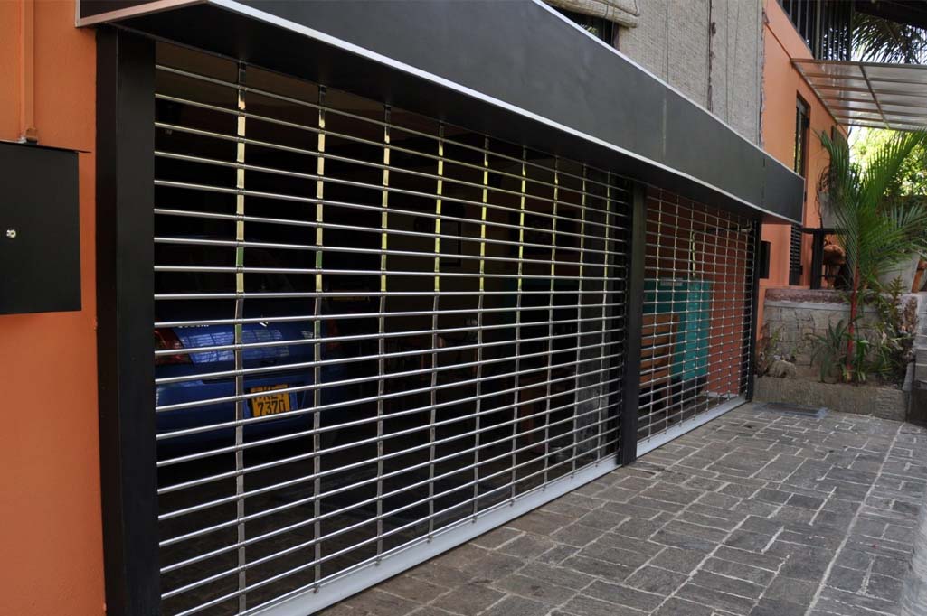 Grill and automatic rolling shutters are ideal for commercial spaces requiring visibility and security.